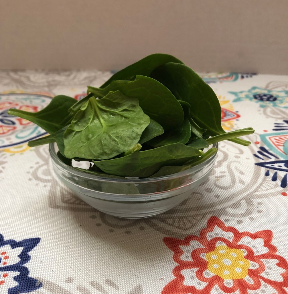 ¼ cup frozen spinach or 1 good handful fresh spinach: high in Vitamin A useful for immune health;